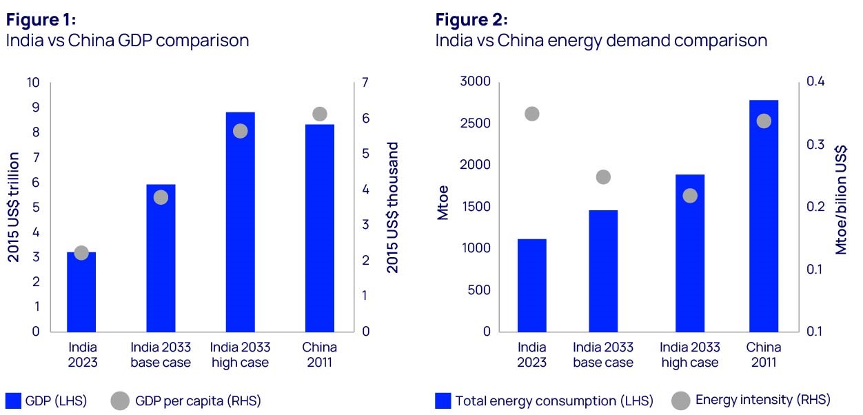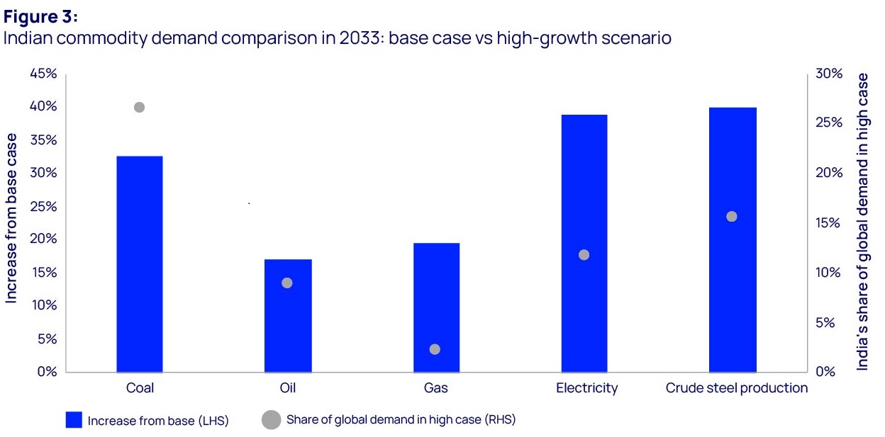 The country’s high-growth scenario could triple India's economy by 2033, but impact on global energy markets differs from China's boom