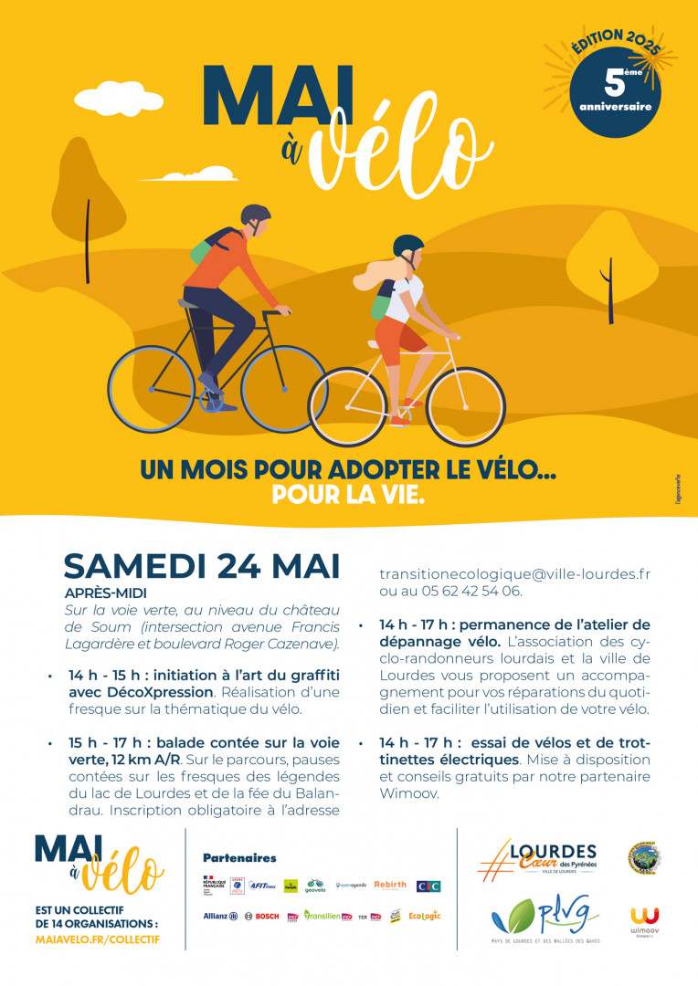 Dans le cadre de son engagement pour la transition écologique et le développement des mobilités douces, la Ville de Lourdes renouvelle sa participation à l'opération nationale « Mai à vélo », organisée chaque année pour promouvoir l’usage du vélo sous toutes ses formes.