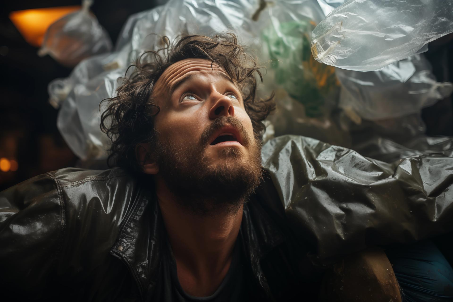 Mediante fotos de personas ahogadas por el plástico que les rodea, osos polares ataviados con chalecos salvavidas y glaciares guardados en bolsas de basura, el fotógrafo francés Blaise Thiercelin, que exhibe su muestra ‘Eyes wide open’ en la sede de la Alianza Francesa de Madrid, quiere “impactar a los visitantes para que cambien de actitud” ante la crisis climática y la contaminación.