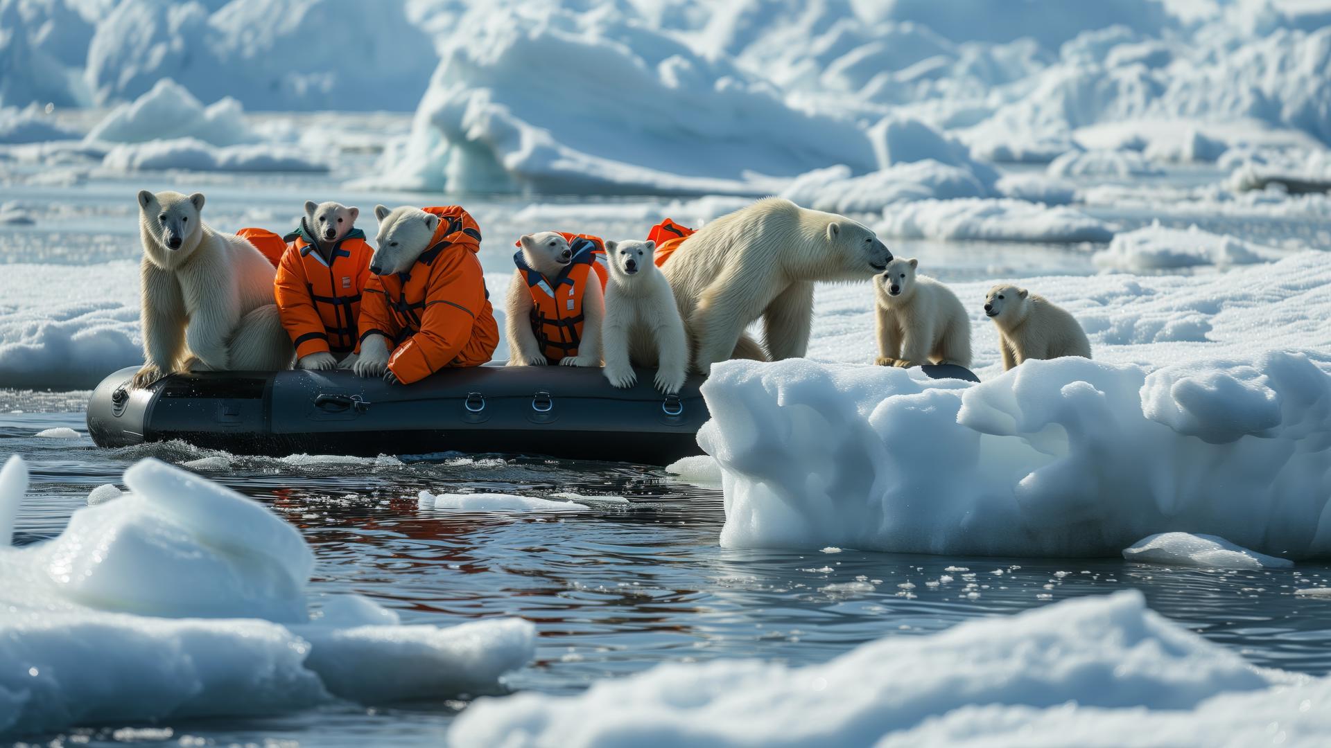 El fotógrafo, que reside en Madrid desde hace seis años, ha usado la inteligencia artificial (IA) para diseñar rostros, mejorar las luces y las emociones y crear escenas irreales como, precisamente en ‘Exodus’, las de unos osos polares vestidos con chalecos salvavidas sobre una balsa y que sirven para comparar su situación con la de las personas migrantes por la emergencia climática.
