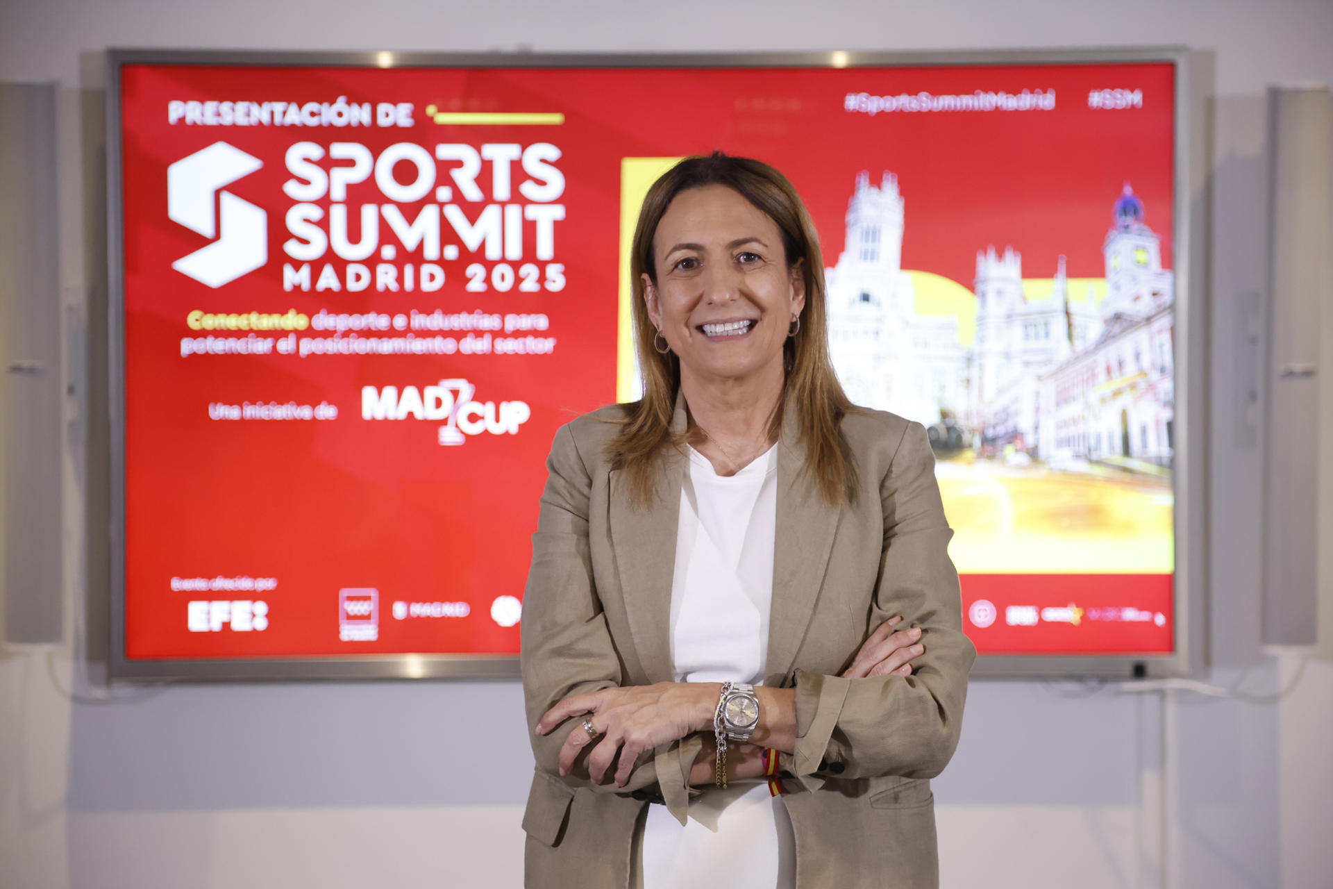 Óscar Vilda, CEO de DAZN España y Portugal, e Inmaculada Benito, directora del departamento de Turismo, Cultura y Deporte en CEOE, demandaron este martes, durante la presentación de la Sports Summit Madrid 2025, actuaciones para concienciar contra el delito de la piratería, para la sostenibilidad de la industria del deporte.