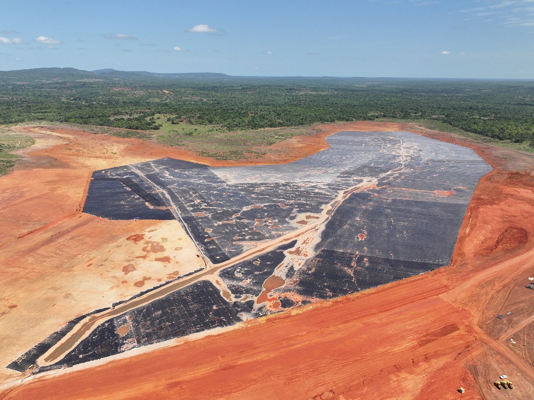 Figure 4: Tailings storage facility showing the extent of lining and main embankment construction (7 June 2025)