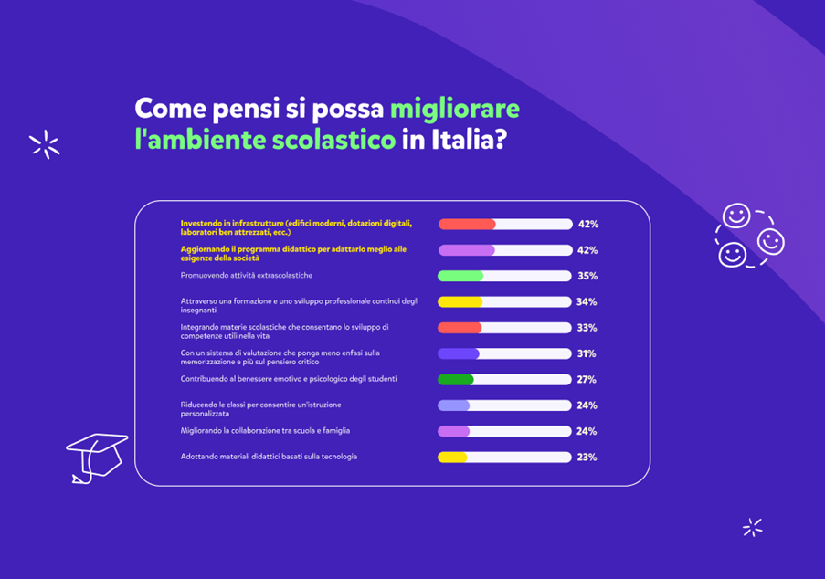 Info 3. Come pensi si possa migliorare l’ambiente scolastico in Italia?