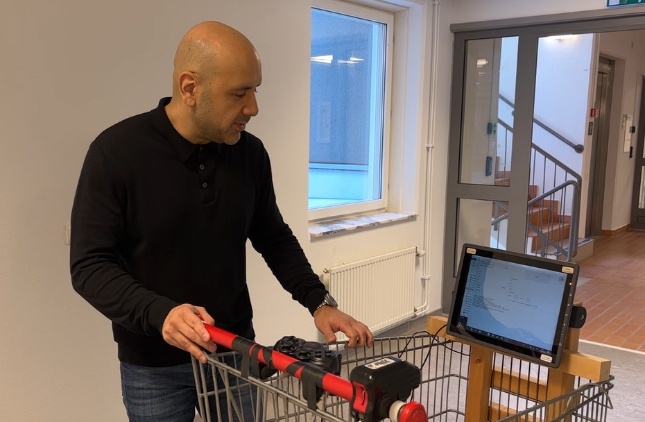 Björn Lindberg, Senior Lecturer in Mathematics with the modified shopping cart.