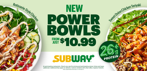 Not only are Power Bowls made to order and filled with fresh veggies, they’re also a convenient and affordable option. As part of a special introductory promotion, you can try either the Sweet Onion Chicken Teriyaki or Rotisserie-Style Chicken Power Bowl for just $10.99.**