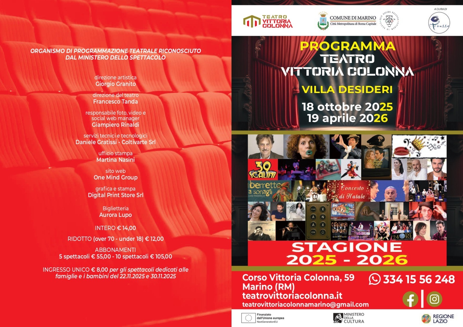 “La nuova stagione del Teatro Vittoria Colonna – dichiara il Sindaco di Marino Stefano Cecchi:- rispecchia la voglia di continuare a vivere una cultura di qualità. Con un cartellone ricco, capace di coniugare leggerezza e impegno, offre un programma culturale che valorizza il nostro territorio e coinvolge un pubblico di tutte le età con appuntamenti dedicati anche ai bambini. Abbiamo fortemente voluto la riapertura del Teatro perché crediamo nel suo potere di spazio di crescita, incontro e condivisione e il suo successo per il secondo anno ne è la prova”.