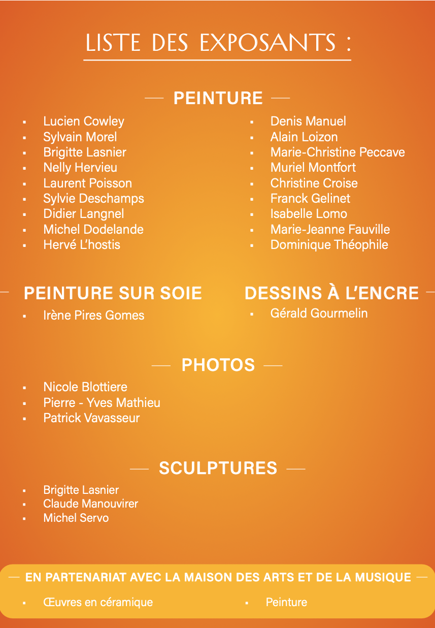 Cette année encore, les élèves de la Maison des Arts et de la Musique se joignent au salon en exposant leurs œuvres !