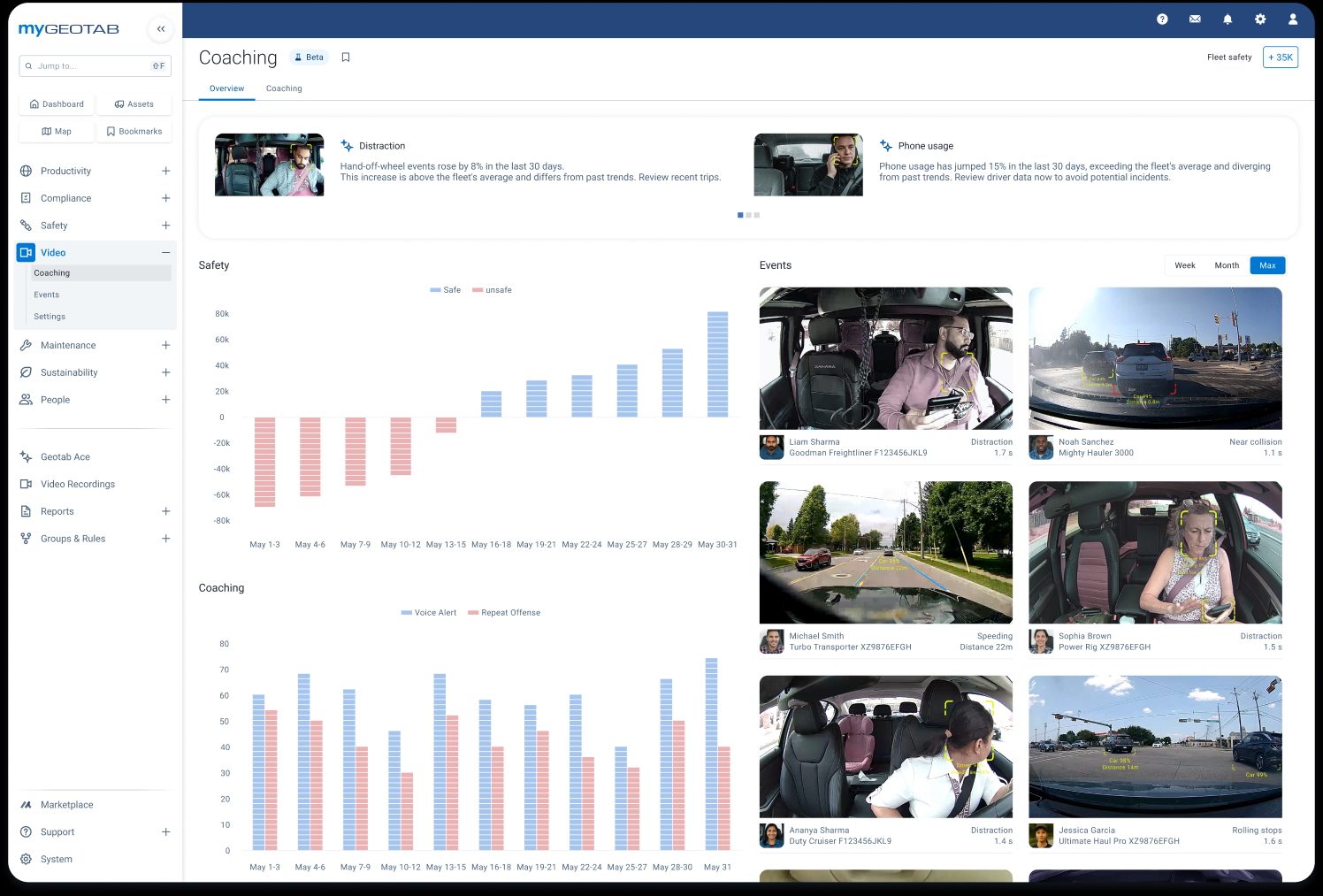 La plataforma de inteligencia de vídeo de Geotab está diseñada para evolucionar continuamente. Sus avanzados modelos de inteligencia artificial perfeccionan automáticamente la detección y el asesoramiento con cada actualización, lo que garantiza que las flotas dispongan siempre de las herramientas más avanzadas y precisas para adelantarse a los riesgos sin trabajo administrativo adicional. La arquitectura abierta de la plataforma está diseñada para admitir una gama cada vez mayor de cámaras avanzadas, con nuevos modelos y capacidades previstos para los próximos meses.