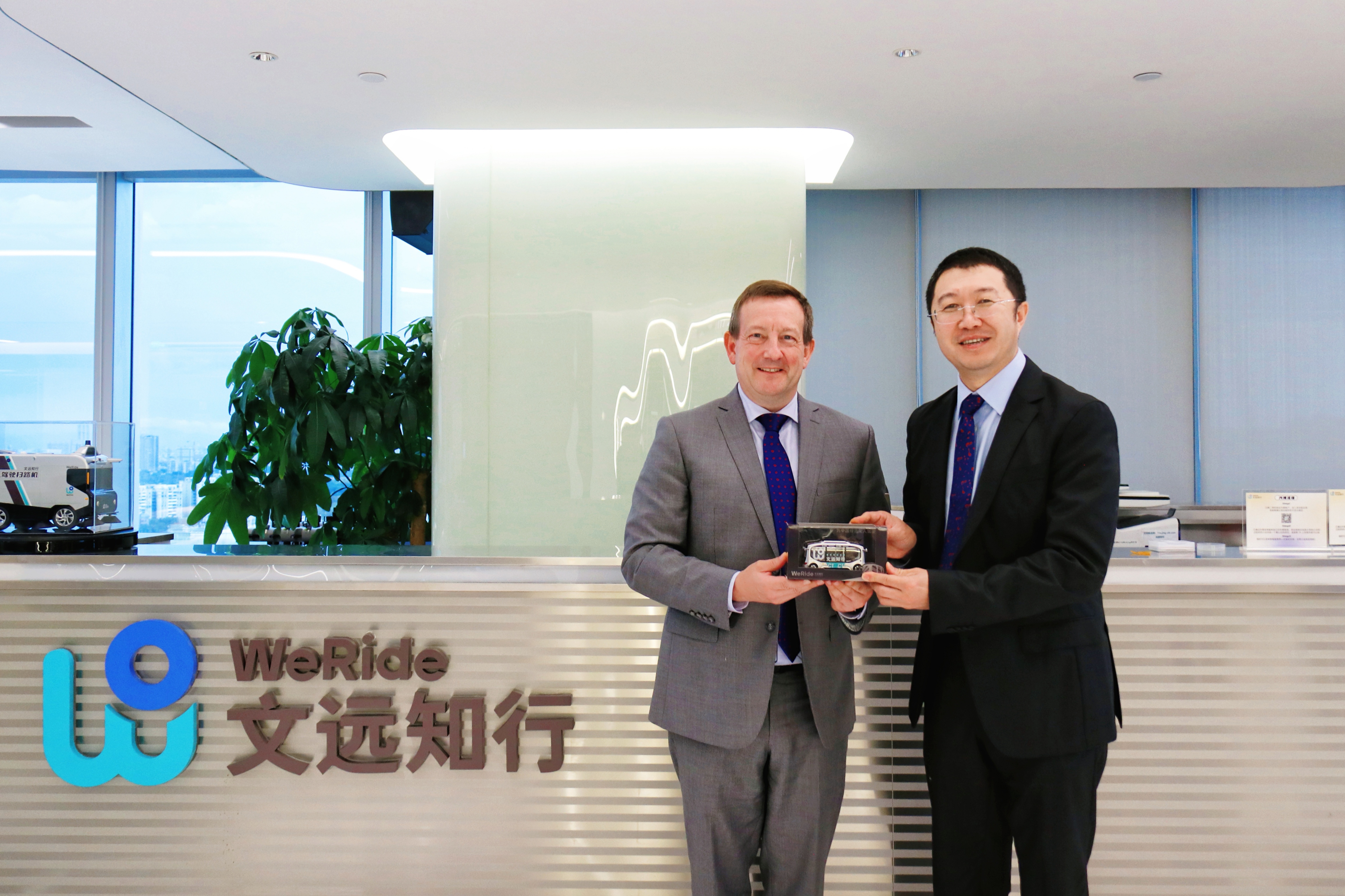 The delegation included Mr. Christian Gianella, Minister Counsellor for Economic Affairs at the French Embassy, and Mr. Laurent Legodec, Consul General of France in Guangzhou. They were welcomed by WeRide's Founder and CEO Dr. Tony Han and other company representatives.