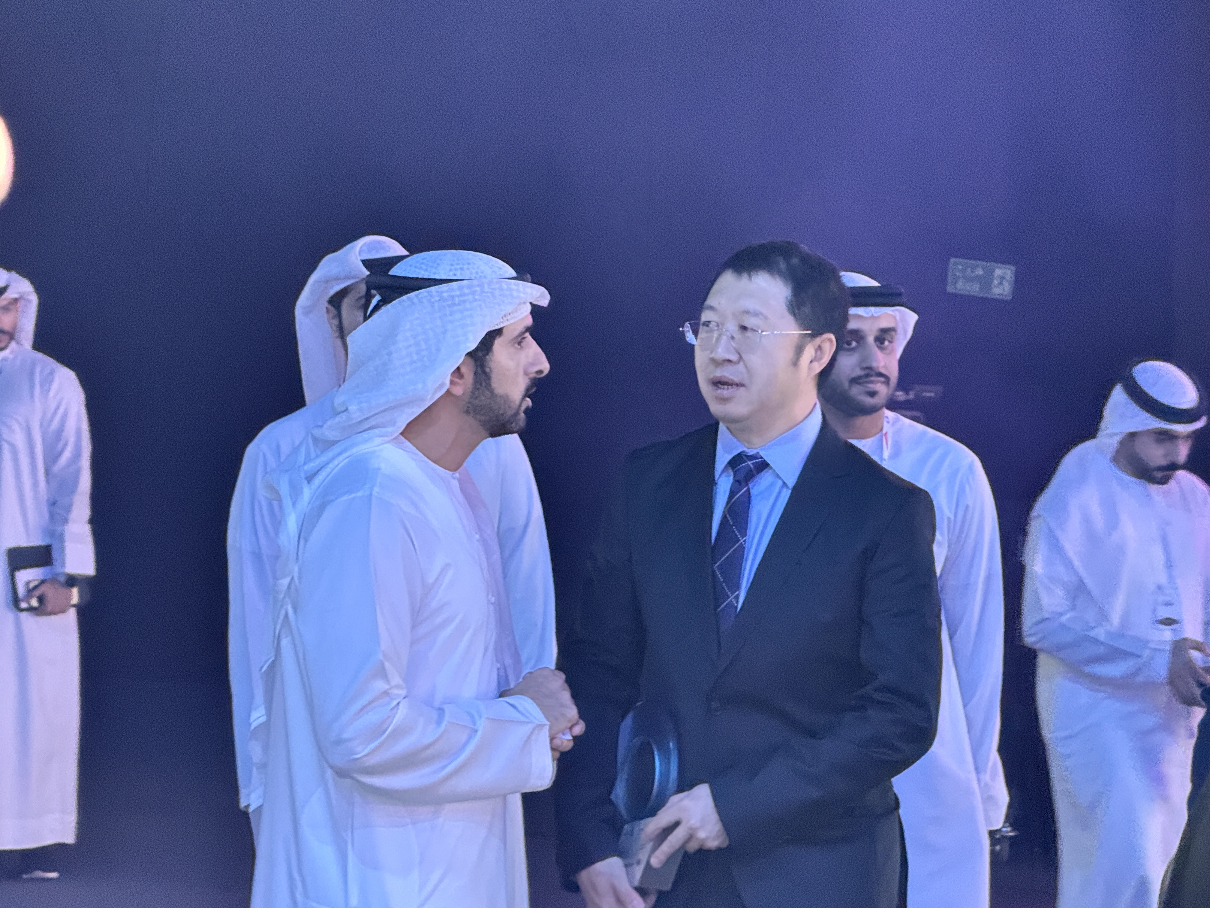 His Highness Sheikh Hamdan bin Mohammed bin Rashid Al Maktoum, Crown Prince of Dubai, Deputy Prime Minister and Minister of Defence of the UAE, with Dr. Tony Han, Founder and CEO of WeRide