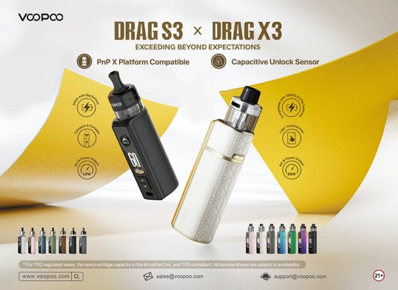 SHENZHEN, China, Oct. 01, 2025 (GLOBE NEWSWIRE) -- VOOPOO se complace en presentar la próxima evolución en la excelencia del vapeo: DRAG S3 y DRAG X3. Ambos dispositivos comparten un diseño CMF unificado, pero han sido diseñados para usuarios muy distintos. DRAG S3 ofrece una potencia máxima de 60 W en un formato compacto con batería incorporada, por lo que es ideal para los usuarios de MTL. Su homólogo, DRAG X3, ofrece una potencia máxima de 80 W de alto rendimiento y admite una batería externa, por lo que es ideal para los entusiastas del DTL.