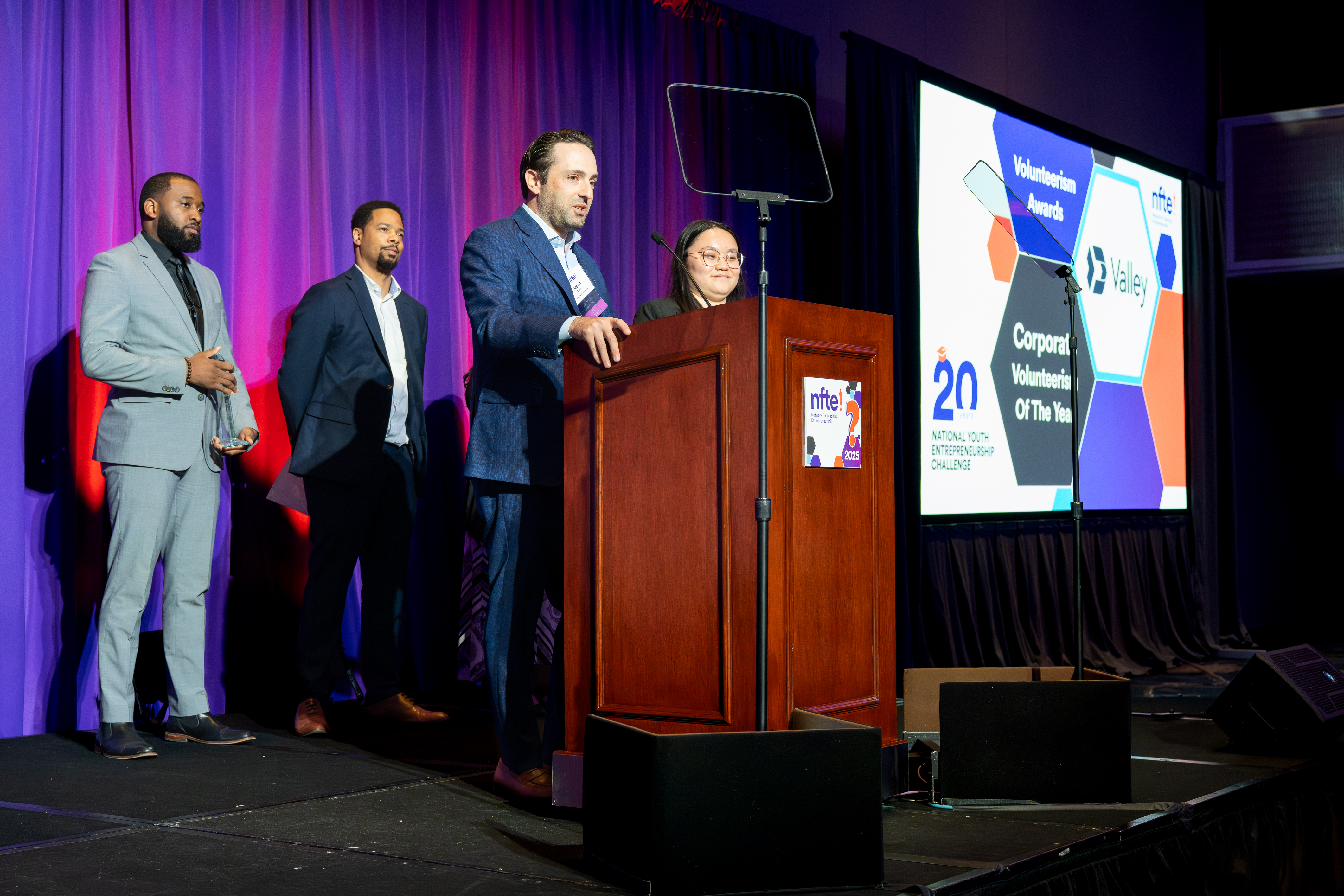This year’s Corporate Volunteer of the Year is Valley National Bank, honored for its broad, multi-regional volunteer engagement. Over the past year, 93 Valley employees volunteered more than 220 hours across a range of NFTE programs. Their work has included coaching students during the Global Day of Coaching in New York, judging business pitch competitions at the regional, national, and international levels, and supporting initiatives such as the NYC Summer BizCamp, Founders Forum, and Youth Entrepreneurship Summit. While the bank’s primary volunteer base is in the Mid-Atlantic, its involvement has extended to NFTE programs in the Southeast, Midwest, postsecondary initiatives, and globally. Accepting the award on behalf of the bank was Jason Cahn, Senior Vice President, Senior CSR-CRA Officer.
