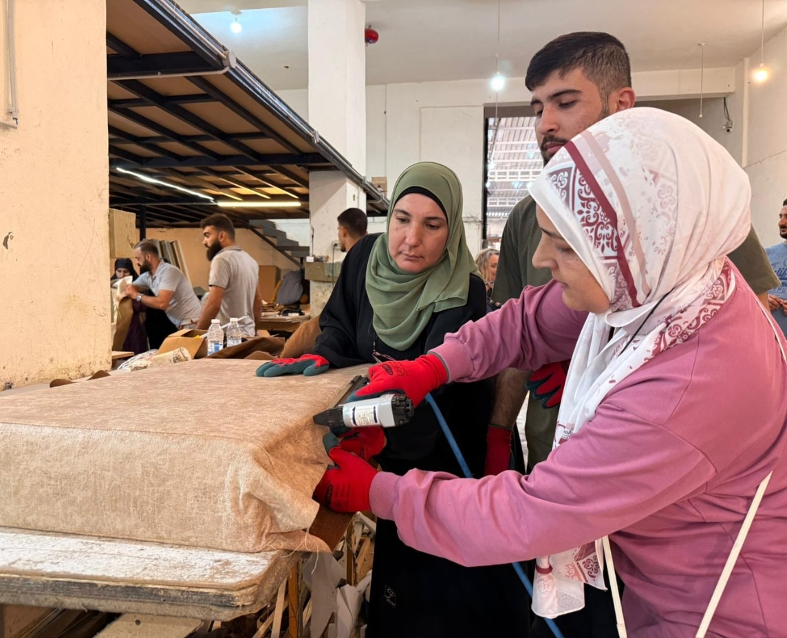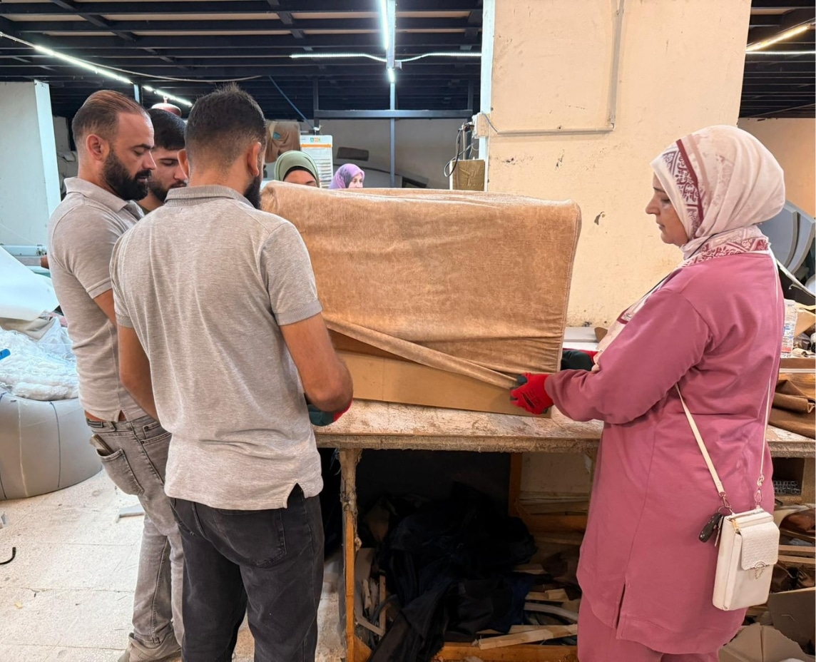 El 31 de octubre, Macarena Cotelo e Iván Aznar han visitado también varias iniciativas impulsadas en el marco del convenio. De este modo, en Aadchit, han conocido a mujeres que participan en un taller de tapicería, en el que aprenden técnicas para apoyar sus negocios familiares o iniciar sus pequeñas actividades propias.