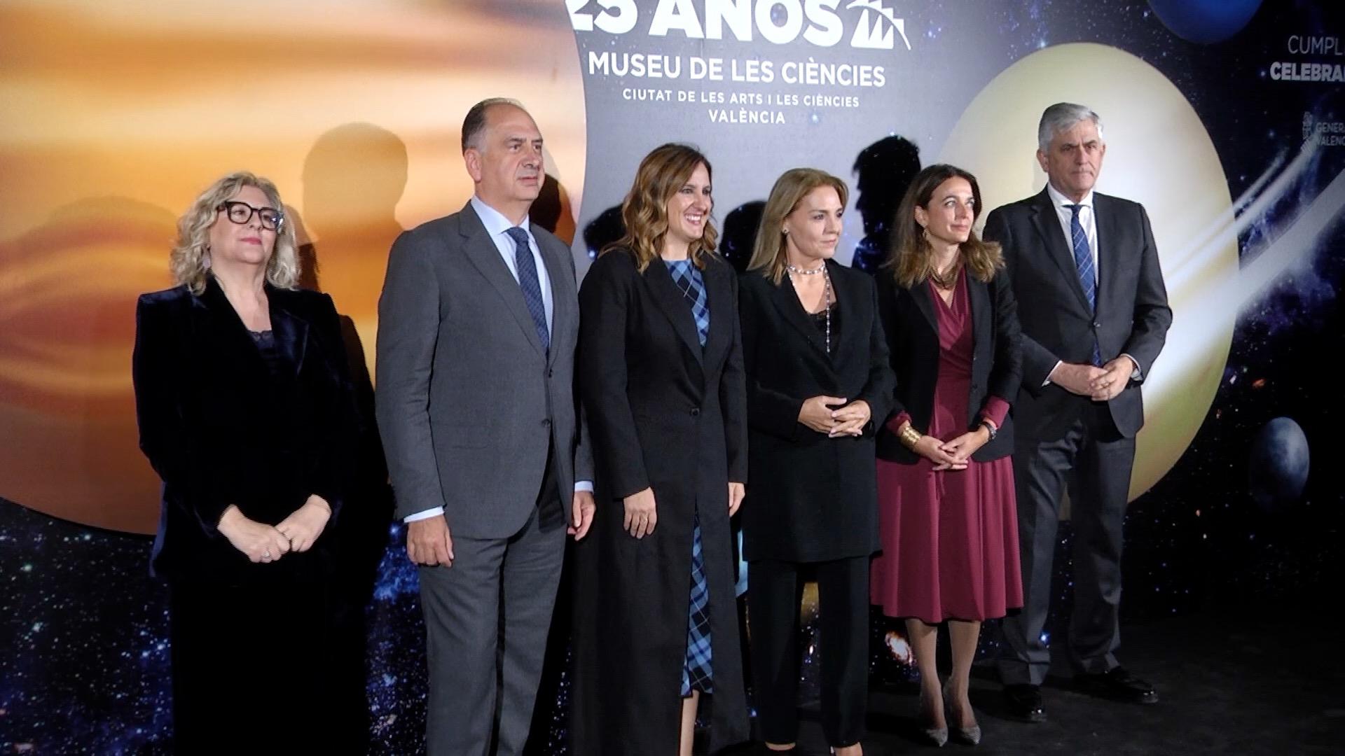 Foto de familia de las autoridades que han acudido al evento de celebración del 25 aniversario del Museu de les Ciències de València.