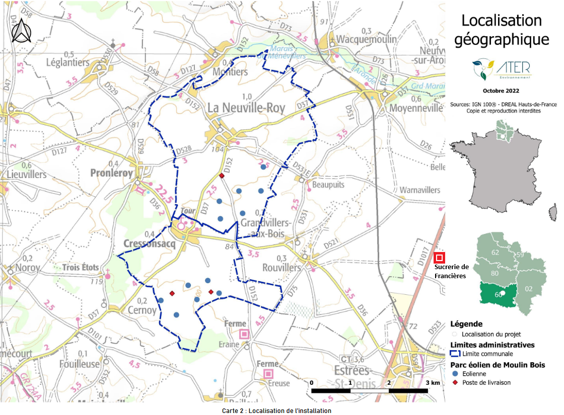 L’Association pour la Sauvegarde de la Sucrerie de Francières, association loi 1901 créée en février 1996, réunit plus de 500 membres, défenseurs de ce témoin de l’histoire locale ou passionnés du patrimoine industriel. Elle est totalement opposée à ce projet d’implantation de 12 éoliennes, d’une hauteur en bout de pale de 200 mètres, sur les communes de Cressonsacq et La Neuville-Roy, qui viendra non seulement enlaidir mais compromettre un paysage d’exploitation agricole caractéristique d’openfield.