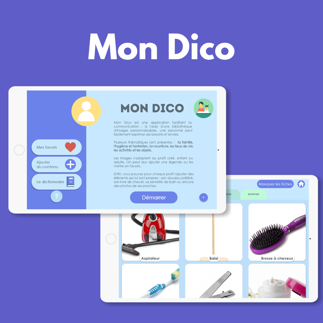 MON DICO est l’outil idéal pour créer des supports de communication personnalisés : cartes de besoins, échelles visuelles, scripts illustrés. Développé avec des orthophonistes, il permet de créer un vocabulaire visuel adapté aux besoins spécifiques de l’adolescent.