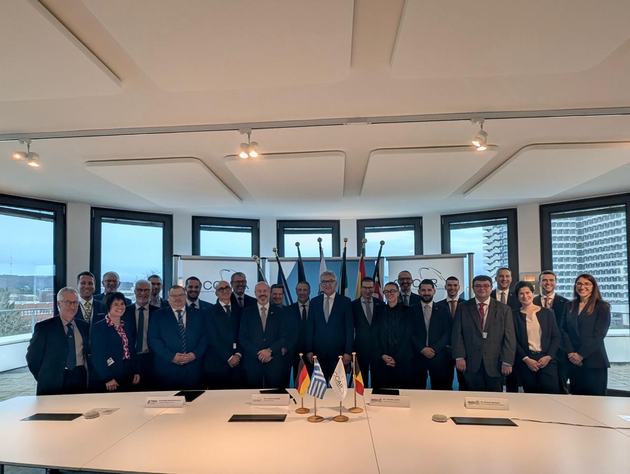 From the signing of the agreement (from left): Mr. Christian Hadjiminas, Founder and CEO of THEON, Mr. Joachim Sucker, OCCAR-EA Director, Ms. Christina Canitz, Head of Hensoldt Optronics, Mr. Michael Holzmann, Managing Director of Hensoldt Theon NightVision
