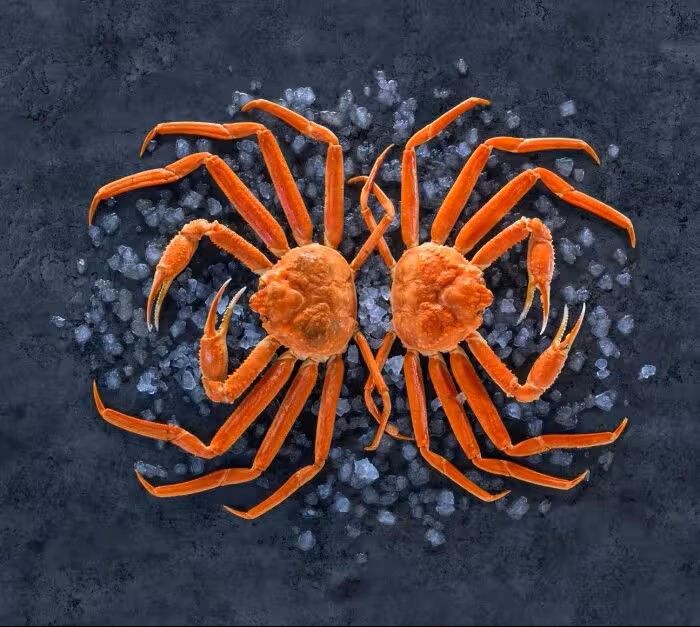 3.- El cangrejo de las nieves noruego es un crustáceo de crecimiento lento que se captura con nasas en las aguas remotas, gélidas y cristalinas del Ártico. Con su carne blanca, suave y dulce, el cangrejo de las nieves ofrece una experiencia gastronómica exquisita.